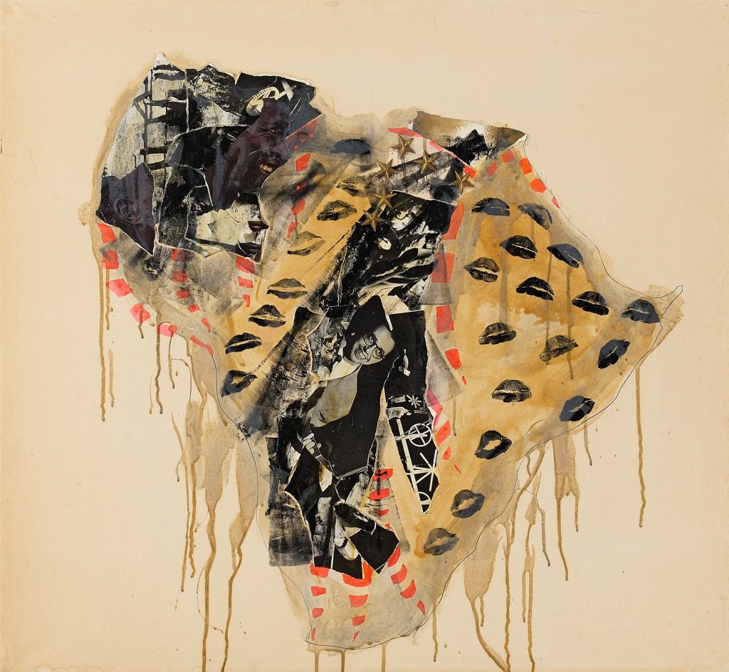 《Sign Language》1996/2010年 油彩、石膏、金箔、印刷物、板 129.7×119.8×6.5㎝ 福岡市美術館蔵